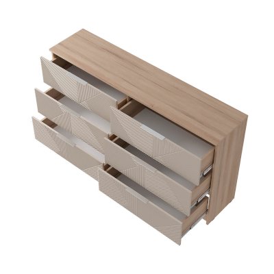 Комод «Эмилия» (КМ-04) – это идеальная альтернатива шкафу для спальни. Эта модель поможет уместить все постельное белье в одном месте, сэкономит пространство и сделает интерьер оригинальнее. Шесть просторных ящиков и небольшая высота – два основных преимущества комода «Эмилия».
