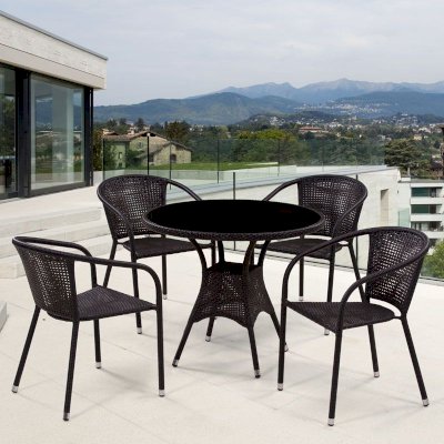 В составе комплекта: стол и 4 стула. Высококачественная лоза из полиротанга стойкая к любым атмосферным явлениям. Крепкий стальной каркас с полимерным антивандальным покрытием и отличным качеством сварки. Изделие сплетено вручную нашими мастерами под жестким контролем качества на каждом этапе производства. Лоза максимально приближена по рельефу и текстуре к естественному материалу. Идеально подходит для использования на улице и внутри помещения в любую погоду. Не боится воды, солнца и минусовой температуры.