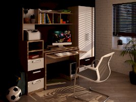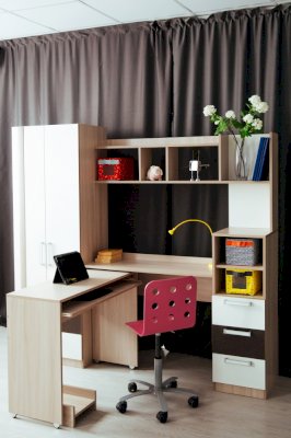• Выкатной стол на роликовых опорах может использоваться как самостоятельный модуль с выдвижной полкой под клавиатуру.
