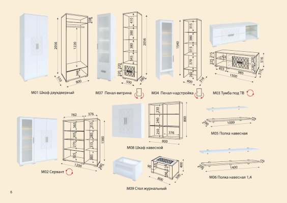 6. К модулям 02,03,04,07 можно заказать светодиодную подсветку для стеклянных полок.