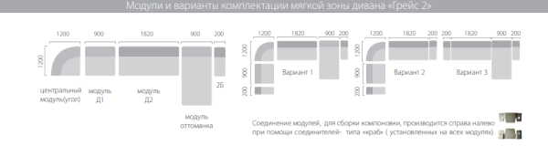 Механизм трансформации "Зацеп" для крепления оттоманки к дивану предусмотрен с двух сторон дивана