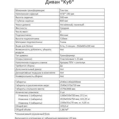 Габариты (ШхГхВ): 2540х1140х1000 мм