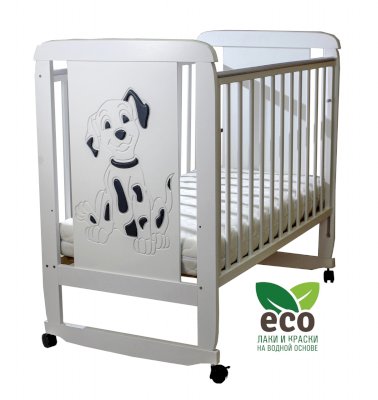 Кроватка "Соня 02" имеет механизм качания колесо-качалка. Колеса оснащены стопорами.