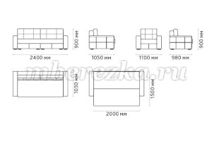 Размеры дивана: 2400*1050*900 мм