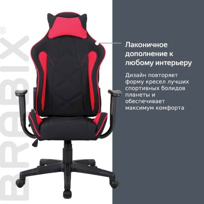 BRABIX "GT Racer GM-100" создано с учётом строгих требований к эргономике и функциональности. Его дизайн повторяет форму кресел лучших спортивных болидов планеты. Длительные игровые сессии и офисные будни ещё никогда не были настолько комфортными!