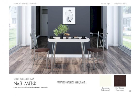 Стол обеденный №3 (Террикон) - за 9 016 руб. в Сургуте. Купите на сайте surgut.onlinemarketmebeli.ru или по телефону 8(800)505-30-63 уже сегодня! Уточнить наличие, комплектацию, актуальную цену можно бесплатно у менеджера ежедневно. Закажите Стол обеденный №3 (Террикон) до конца акции! Доступна покупка в кредит, рассрочку. Доставим со склада или на заказ.