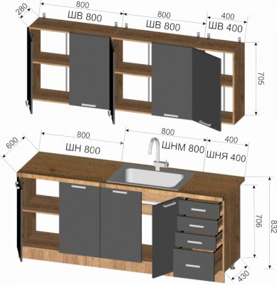 Шкаф верхний: 800х705х300 мм