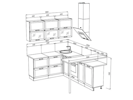 Глубина нижних шкафов со столешницей: 600 мм