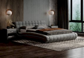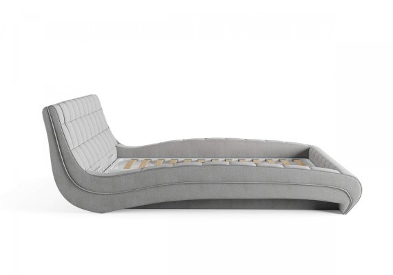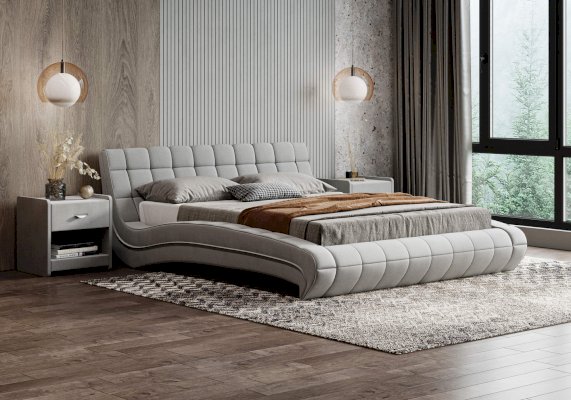 Изящная и элегантная интерьерная кровать с изысканным внешний видом и плавными линиями. В комплект кровати входит кроватное основание. Каркас основания выполнен из металла, ламели - из берёзы. Обратная сторона изголовья также обита основным материалом.
