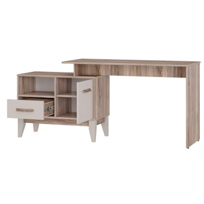 Письменный стол «Скандика» ПС-02 - это универсальное решение для дома и офиса. Данная модель оснащена удобной рабочей поверхностью, на которой можно разместить ноутбук, лампу и рабочие инструменты. Помимо рабочей поверхности также имеется встроенная тумба, которая состоит из просторного отсека за дверцей, ящика и одной открытой полки. Благодаря компактным размерам стол легко уместится даже в небольшой комнате. Створка плотно фиксируется на магнитах.