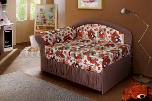 Яркий дизайн модели и ее миниатюрность говорят сами за себя – этот диванчик в основном предназначается для детских комнат. Он представляет собой детский диван-кушетку , на которой удобно может разместиться «на ночлег» как подросток, так и взрослый человек – размеры спального места позволяют это.