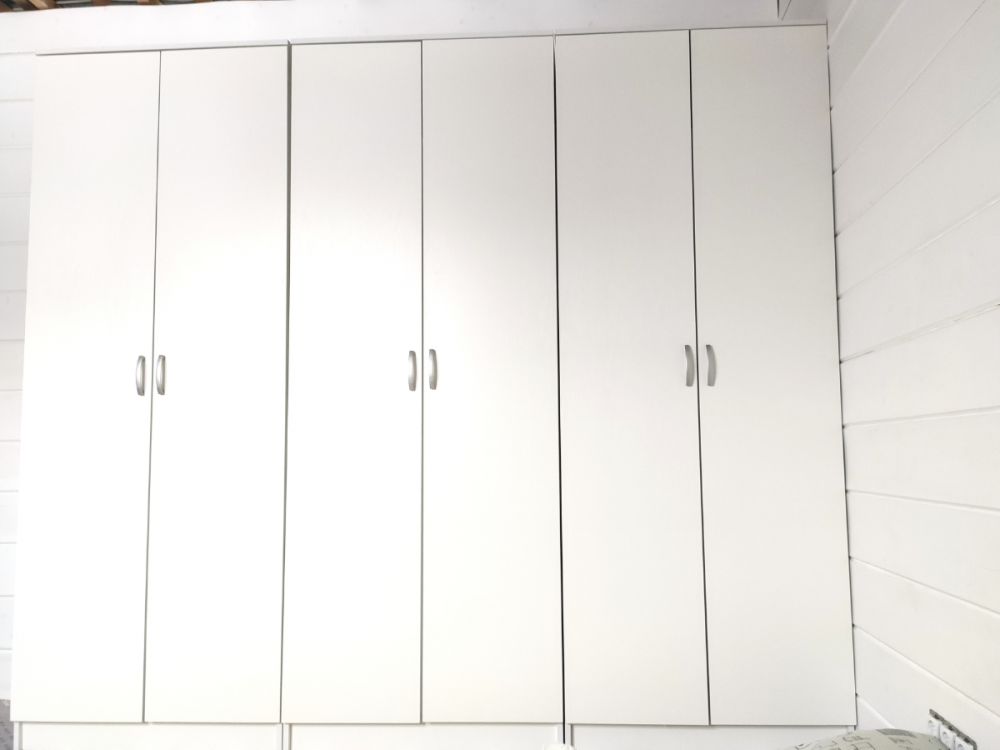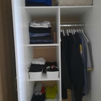 Заказывала 3 шкафа для гардеробной. 1 их них этот. Двери на шкафы не ставили. В итоге имеем обставленную гардеробную+6 дверей, ищ которых собрали еще стелажи.