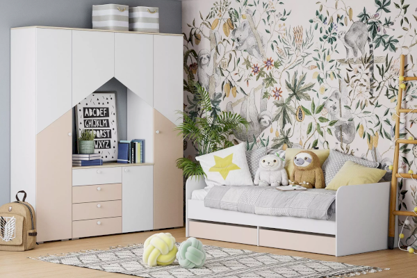 Цвет бежевый / белый / дуб (сонома, молочный, феррара) / зеленый / розовый