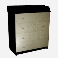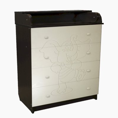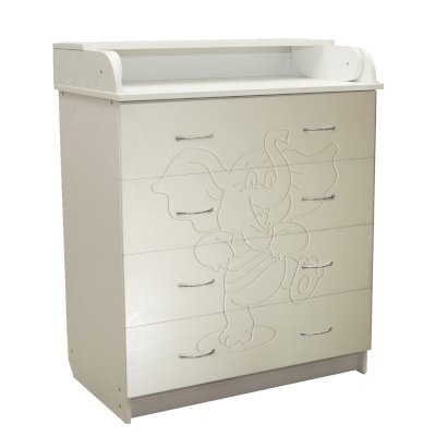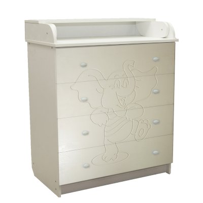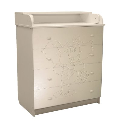 Вам понравится привлекательный внешний вид детского комода. На его лицевой части вы увидите углубленный декор в виде Слоника.