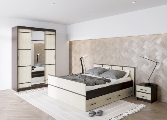 Двуспальная кровать Сакура выполнена из ЛДСП высокого качества в контрастных цветах. Данная модель оснащена двумя выдвижными ящиками, в которых можно хранить постельные принадлежности или любые необходимые вещи. Изделие не имеет ножек, а значит избавит вас от скопления пыли под основанием.