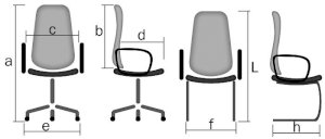 вариант исполнения а.высота кресла b.высота спинки c.ширина d.глубина сиденья e.диаметр крестовины